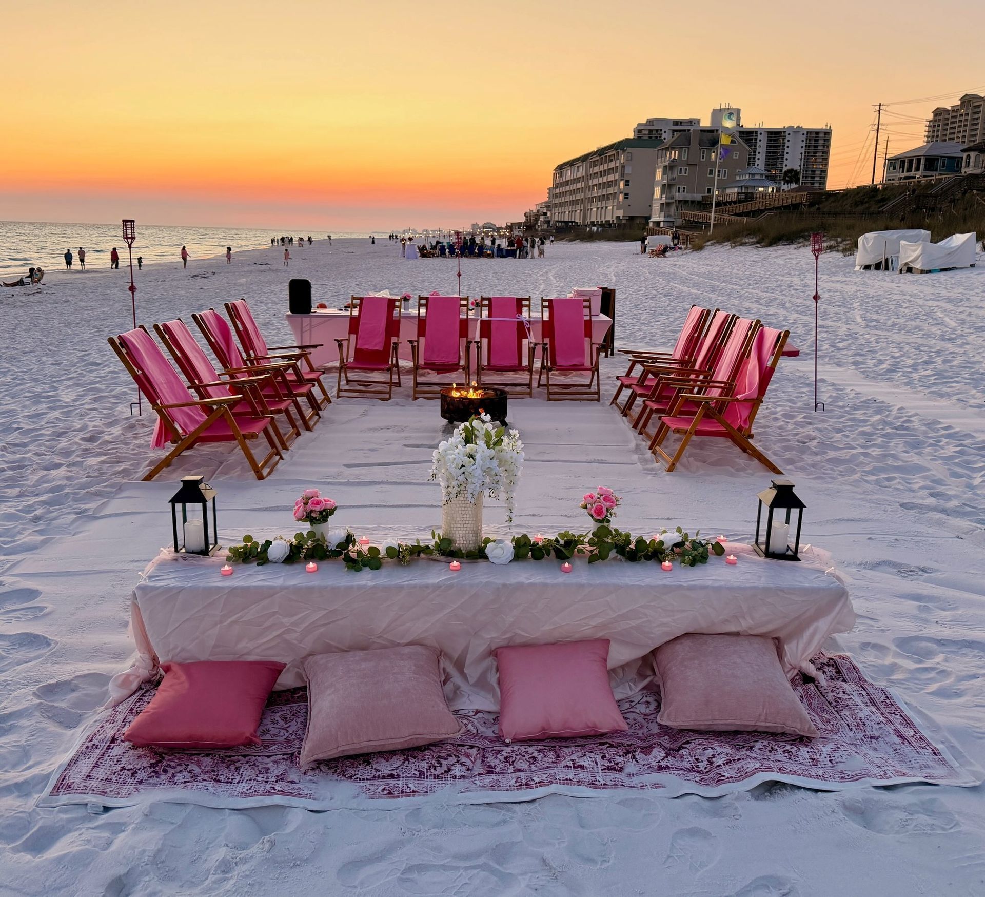 We serve guests staying in 30A and Destin with professionally hosted bonfires in nearby permitted beach areas including Miramar Beach, Santa Rosa Beach, Rosemary Beach, and Seaside.